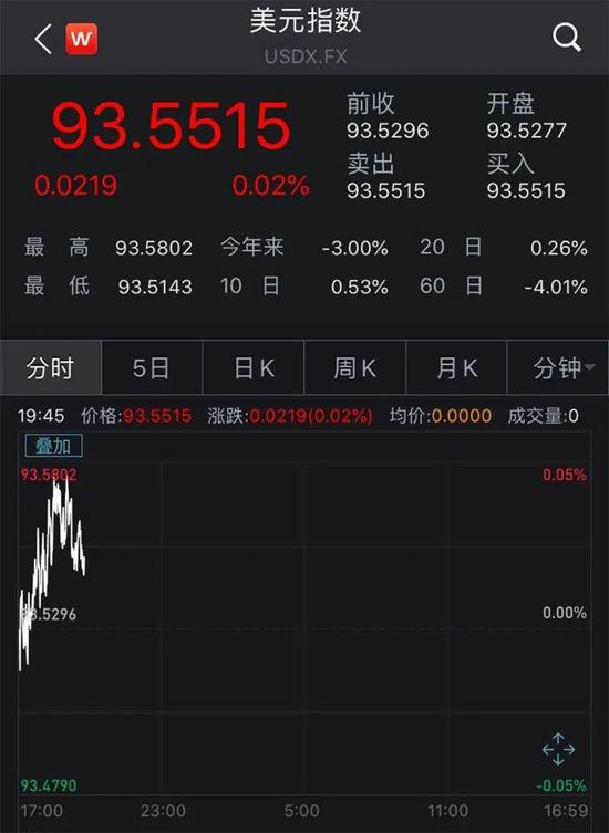截至收盘,衡量美元对六种主要货币的美元指数当天上涨0.79%,在汇市尾市收于93.6581。