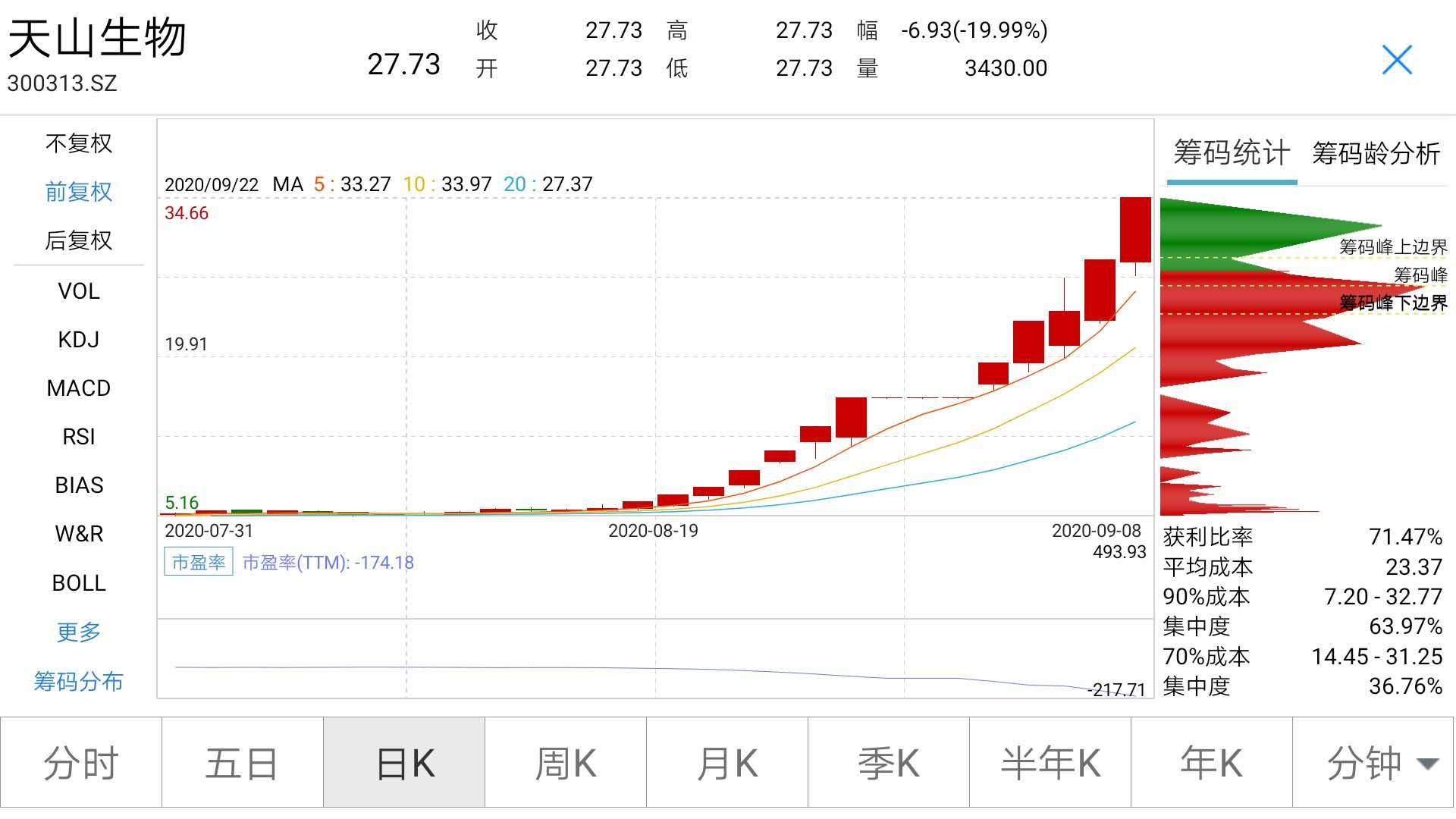 但就是在这种情况下,天山生物仍然走出了生猛行情。8月19日至9月8日收盘价累计涨幅接近5倍,被称为创业板改革后的“第一妖股”。公司在公告中多次提醒投资者“依法合规交易”,此前8月28日因股价异常波动被停牌一次,复牌后更加疯狂,9月8日天山生物触发异常波动标准,深交所再次对其要求停牌核查。