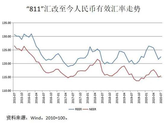 从人民币多边汇率的走势来看,“811”汇改至今,多边汇率波动又可以分为两个阶段。第一阶段是从“811”汇改到2017年5月,人民币的多边汇率总体上有一个比较显著的贬值。第二阶段是从2017年6月至今,人民币的多边汇率呈现宽幅振荡态势,汇率中枢水平并没有发生显著变化。