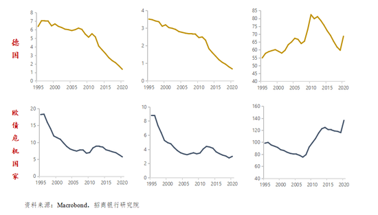 复盘一下历史是有益的。八年前欧债危机的场景,我们还记忆犹新。当时陷入危机的部分欧洲国家,其公共债务率大约在150%附近。这是一个可能的阈值吗?新冠肺炎疫情再次将这些欧洲国家的公共债务率拉回甚至超过前期的高点。那么,往日是否重现?如果说,八年前欧债危机中的高公共债务不可持续,那么这次新冠肺炎疫情带来的高公共债务怎么可以持续?