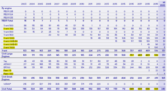 经营企业,同样如此,虽然就罗罗在上半年的业绩表现来说,实在辜负了其在白纸黑字上的“远虑”,但目前的业界宏观环境如此,现有的民用航空发动机这般的商业模式,再叠加大型跨国公司本身经营属性上的天然缺陷,多少有点“非战之罪”的意味。如果非要指摘什么的话,那就是罗罗在这几年Trent系列发动机交付量不断新高的同时,没有积累足够充裕的自有现金流(FCF),没有能够维持公司在信用市场的等级,没有在2019年宽体机市场呈现下滑趋势时及时采取应对措施。