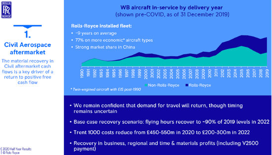 如果本文标题因此改为“半年爆亏54亿英镑,罗罗岌岌可危!”之类,就会显得相当浮夸和外行——因为,亏损是情理之中的事情,而理所当然的原因就是疫情的影响。