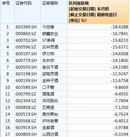 8月份表现亮眼的白酒板块本月以来跌幅较大。Wind统计显示,截至9月22日收盘,白酒指数9月初以来累计跌幅近11%,连股价此前接连创新高的贵州茅台也下跌近7%。