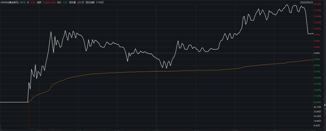 其中豫金刚石午后更是直接涨停,上演“地天板”日内振幅达到40%,最低价与最高价之间的价差达到50%,换手率高达35.47%。
