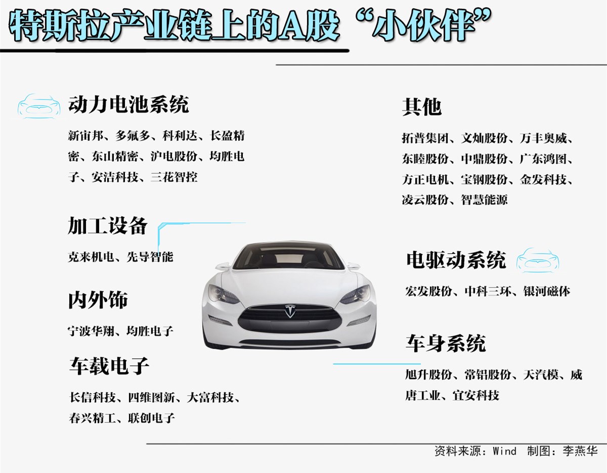 特斯拉自产电池,中国锂电原材料、设备供应商拥有最强的全球竞争力,有望直接配套特斯拉,例如正极材料、负极材料、隔膜、电解液、导电剂、结构件等;推动特斯拉整车进一步降本放量,利好特斯拉供应链,包括传统零部件、热管理、汽车电子等。