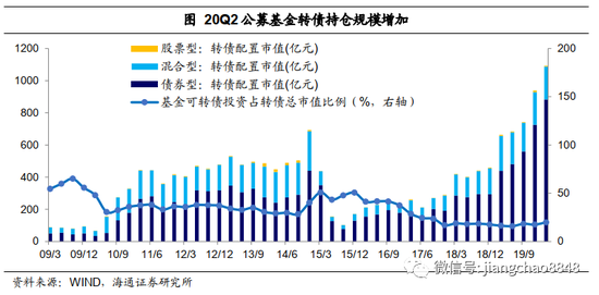 债券型基金仍是转债持仓主力。目前债券型基金依然是转债最主要的持仓机构,20Q2债基共持仓转债942亿,占基金持仓转债总额的75%左右。债基2季度转债仓位(占基金净值比重)与20Q1基本持平,约在2%左右。而20Q2债券型基金转债持仓增加152亿元,也是2季度转债主要的增持力量。