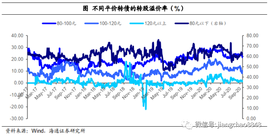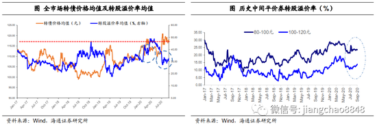 以中间价位平价券的转股溢价率来看,截至8月末,80-100元和100-120元平价券的平均转股溢价率均大约处于17年以来由低到高80%分位数、85%分位数,处于大约去年年底至今年年初左右的水平。