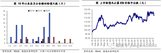 另一方面,公告不赎回的转债数量创新高。截至8月末公告过不赎回的转债有28只,今年以来新增23只。从历史情况来看,今年6月之前公告表示触发强赎条件但不赎回转债的数量较少,而7月快速增加至9只。总体来看公告不赎回的时点多为市场较好或者有整体上涨趋势的时候。
