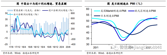 海外因素短期扰动,不改中长期趋势。全球复苏外需改善。各国制造业和服务业PMI开始重新扩张,到7、8月份,美欧的制造业PMI指数均回升到了50以上的扩张区间,美国的就业也开始改善。美元计价下,8月我国出口总额同比增速9.5%。
