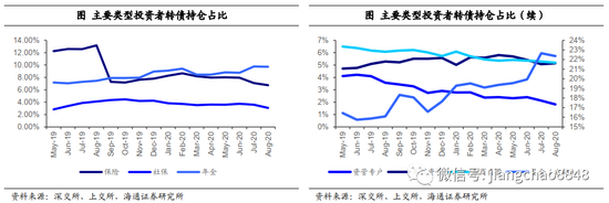 从持仓情况来看,截至8月基金持有转债占比为22.37%,较年初增长了4.7个百分点,是持有转债最主要的机构投资者,且持仓占比总体呈上升趋势。保险、社保持仓占比相对平稳,年金持仓有上升趋势,是重要的配置力量。