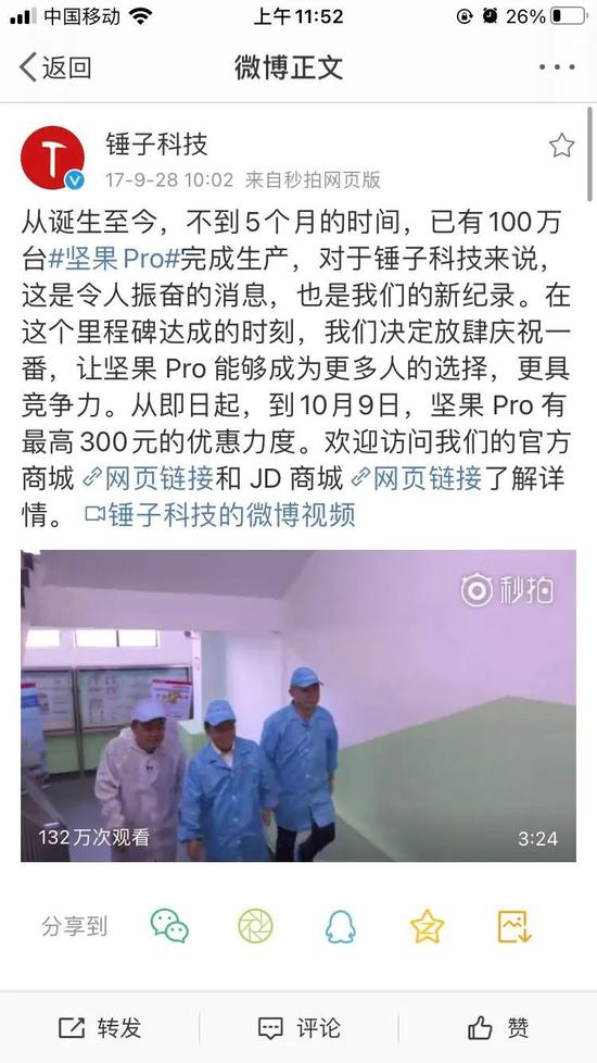 (图片来源:锤子科技微博)