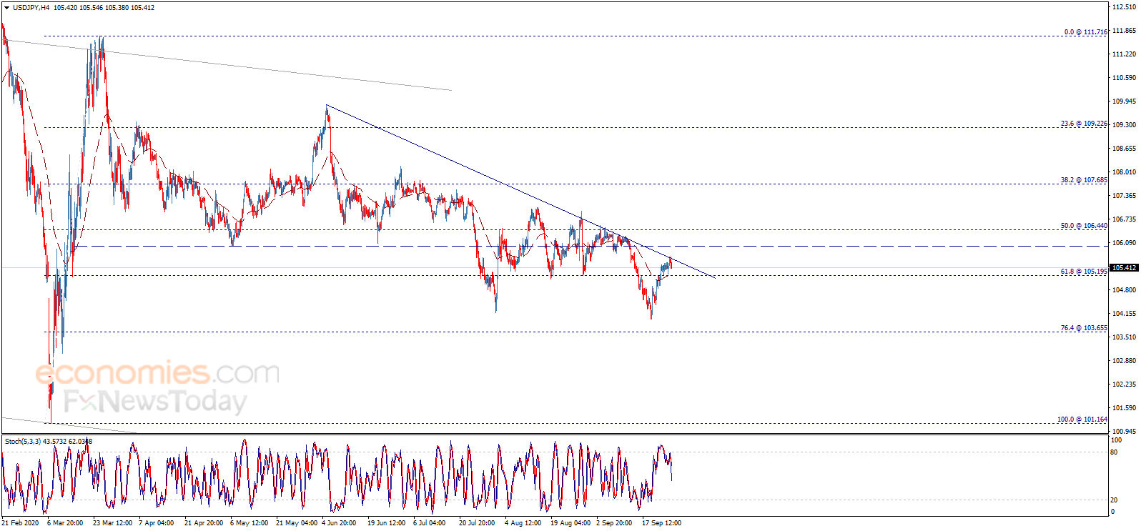 如图所示,美元/日元升势止步于阻力线,随机指标传递负面信号,这推动汇价下滑,并跌向105.20支撑。不过,从4小时图来看,EMA 50指标与上述支撑相遇,从而增加该水平的支持力度。