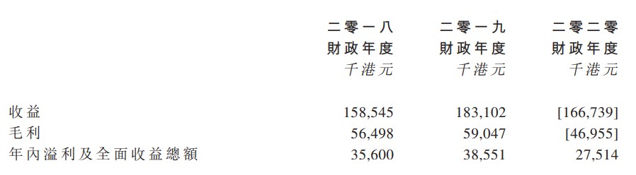于2018—2020财政年度,公司的收益分别约1.59亿港元、1.83亿港元及1.67亿港元。