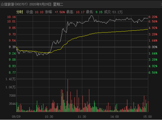 然而今日早间开盘,众信旅游股价低开后快速下挫,至09:34分,该股跌10%报9.09元,封上跌停板。截至发稿,该股仍跌逾9%。