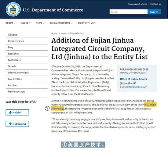 10月29日这一天,美国商务部工业和安全局发布公告,将福建晋华纳入“实体清单”。