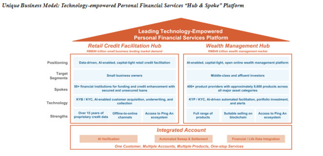 陆金所控股专注于规模大但未被充分服务的中产阶层及富裕人群客户市场,通过两个中心枢纽:零售信贷和财富管理,辐射百余金融机构,为投资者提供复合其风险偏好和个性需求的贷款和理财产品。