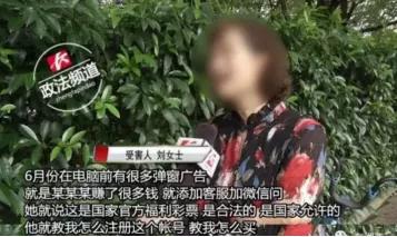 还有湖南湘西的刘女士,上网时看到彩票投资的弹窗广告,便点了进去,在客服指引下跟单买彩票,一年时间内亏损了60万。