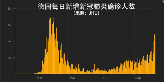 德国新冠肺炎疫情卷土重来明显,阳性检测率急剧上升,新增确诊人数已从之前的每日1000~2000例快速飙升至每日4000~5000例,许多感染率超标的城市都因此重启了部分的封锁措施,甚至连德国经济部长阿尔特迈尔(PeterAltmaier)也因曾与新冠肺炎确诊病患有过接触,而在家进行自我隔离。
