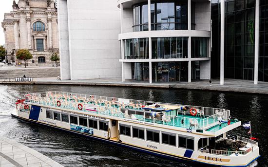 10月8日,在德国首都柏林,一艘空空荡荡的游船在施普雷河上航行。新华社