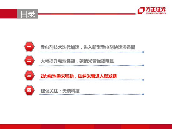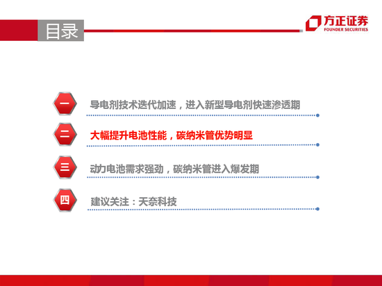 原标题 新型导电剂碳纳米管与题报告 碳纳米管性能优势明显,动力电池需求强劲