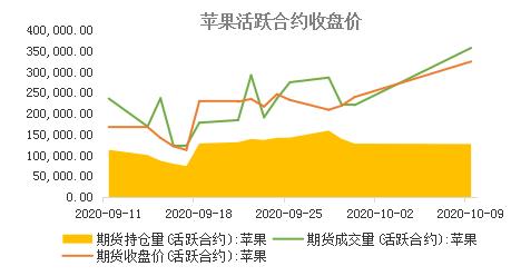 从苹果近期的资金流向以及持仓情况来看,截至10月12日,主力合约AP010结算价8,217元/吨。主力持仓额为956,886.08万元,较上一交易日总持仓额1,000,726.58万元减少43,840.5万元,主力持仓量为116,452手。从再从苹果市场总持仓情况来看,苹果市场总持仓额为1,235,367.25万元,较上一交易日总持仓额1,335,280.22万元减少99,912.97万元,苹果总持仓量为150,807手,维持在历史较低水平。