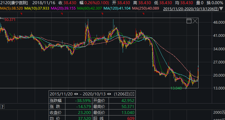虽然是“精神病第一股”,但康宁医院并没有得到资本的青睐。数据显示,上市至今,康宁医院股价已跌去近4成,且股价上市次日即巅峰。