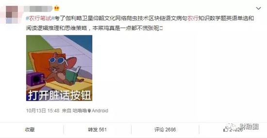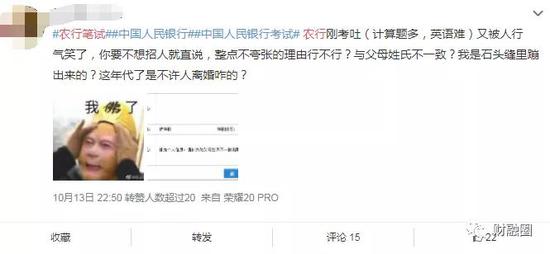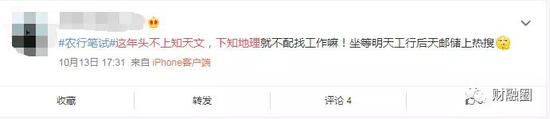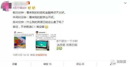 继中行、交行后,13日下午“农行笔试”的话题登上微博热搜榜。