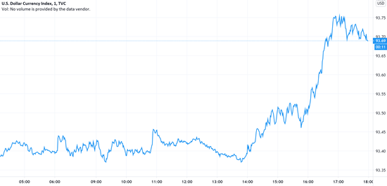 (美元指数分钟线图,来源:TradingView)