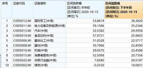 如果说今年上半年的A股行情是由医药、消费、科技三驾马车并驾齐驱所推动的,下半年似乎来到了军工的主场。三季度以来,军工板块行情爆发,截至10月15日,国防军工指数以38.38%的涨幅稳居各行业之首,也将一众军工主题基金推到了业绩排行榜的前列。