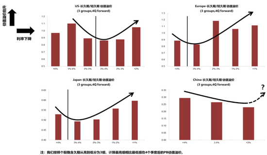 图: 突破3-4%阈值后中枢继续下行,“长久期资产”会获得更高的估值溢价