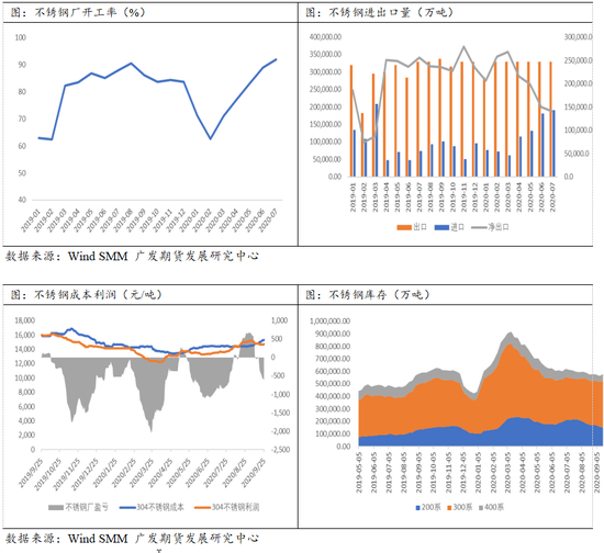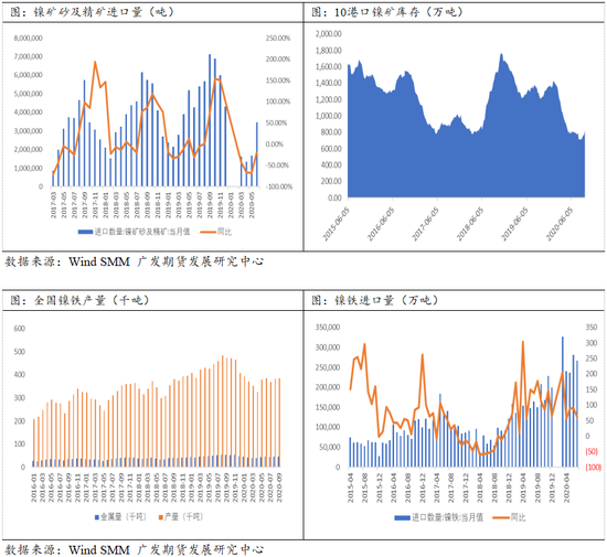 镍生铁:据海关数据统计,据海关数据显示,2020年8月中国进口镍铁29.19万实物吨,同比增长101.65%,环比增长9.31%。1-8月累计进口211.74万实物吨,累计同比增长91.02%。随着印尼镍铁产量放量,中国进口的镍铁量环比继续增长。8月全国镍生铁产量环比增加3.42%至4.47万镍吨,同比减少15.88%。分品位看,高镍铁8月产量为3.74万镍吨,环比增3.67%;低镍铁8月份产量为0.74万镍吨,环比增2.18%。8月中国镍生铁产量较7月环比增加较多,高镍生铁产量产量增加与部分前期停产检修铁厂复产有关,同时,高镍生铁价格持续上涨驱动主流大厂产量恢复,加之新增产能释放等多个因素叠加, 8月份产量增幅较大。低镍生铁产量增加与200系一体化不锈钢产量增加有关。9月全国镍生铁产量预计小幅下降,环比下降0.09%至4.468万镍吨,同比减15.29%,其中高镍生铁环比上涨0.11%至3.74万镍吨,低镍生铁环比减1.12%至0.73万镍吨,9月份镍铁产量有所下降主要与生产天数缩减有关。