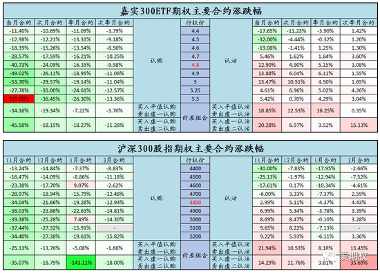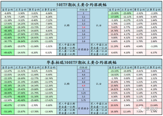 跨式空头及熊市价差组合表现优异。在上周三的爱权说和周末的信期权中,我们就给大家强调过,在市场行情持续平淡波动不大时,隐含波动率大概率逐渐下降,如果布局大涨可以提前买入认购,而如果希望在这样的行情中获利,使用跨式空头和价差组合效果不错。今日的行情也验证了这一点,认购普跌,虚值认沽不涨反跌,熊市价差组合及跨式空头都有不错收益。