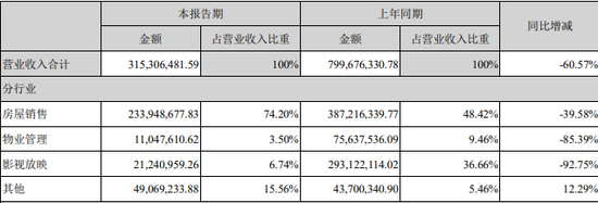 2020年半年报显示,嘉凯城的房屋销售、物业管理、影院放映、其他行业,占营收比例分别为,74.2%、3.5%、6.74%、12.29%。