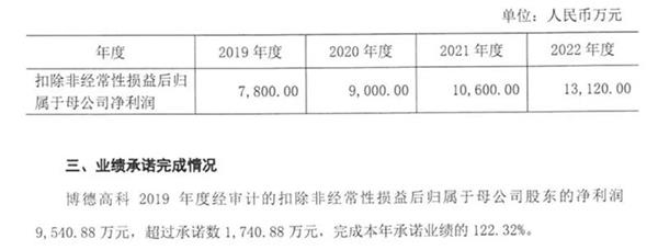 尽管有这么个意外的插曲,但收入囊中的博德高科业绩亮眼,2019年完成业绩超额逾20%。