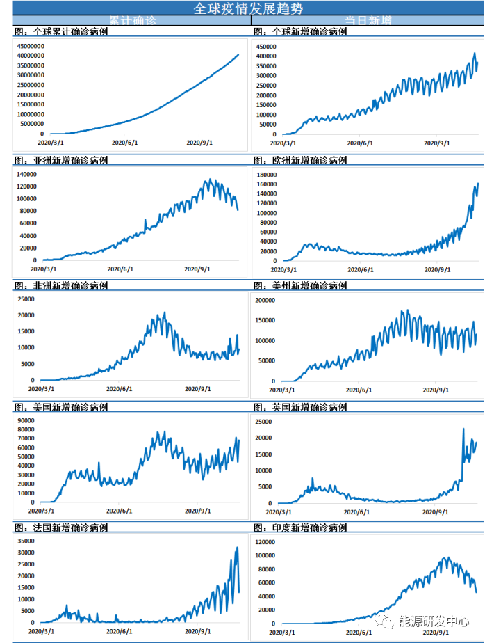 【2】油价横盘整理,新冠疫情升温及石油供给增加带来压力; ① 油价周二大致持平,美原油目前交投于40.98美元/桶附近;因全球新冠病例激增,令市场担心将阻碍能源需求回升,而利比亚增产也使供应更加充裕,油价仍承压于近一个半月高点41.49下方。② 根据计算,截至周一,全球新冠病例数已超过4000万例,欧洲和北美第二波疫情引发新的限制措施。③ Vanda Insights的能源分析师Vandana Hari表示,“油市再度阴云笼罩,需求情况已经疲弱;由于沙特阿拉伯和俄罗斯拒不表示他们将重新考虑1月开始OPEC+增产的计划,供应面人气也受到打击。” ④ 石油输出国组织(OPEC)及其盟友周一承诺将采取行动支撑石油市场,因围绕新冠疫情的担忧加剧。⑤ 产油国的三位消息人士称,如有必要,从1月开始的增产计划可能会被逆转。⑥ 澳洲联邦银行(CBA)大宗商品分析师Vivek Dhar在一份报告中表示,“我们认为石油市场无法吸收OPEC+计划从2021年1月1日开始增加的约2%的全球供应,利比亚产量增加加剧了供应过剩担忧”