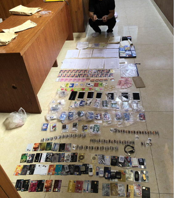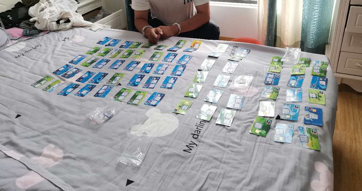 江苏常州警方抓获的犯罪嫌疑人,缴获大量用于犯罪的“两卡”。公安部提供