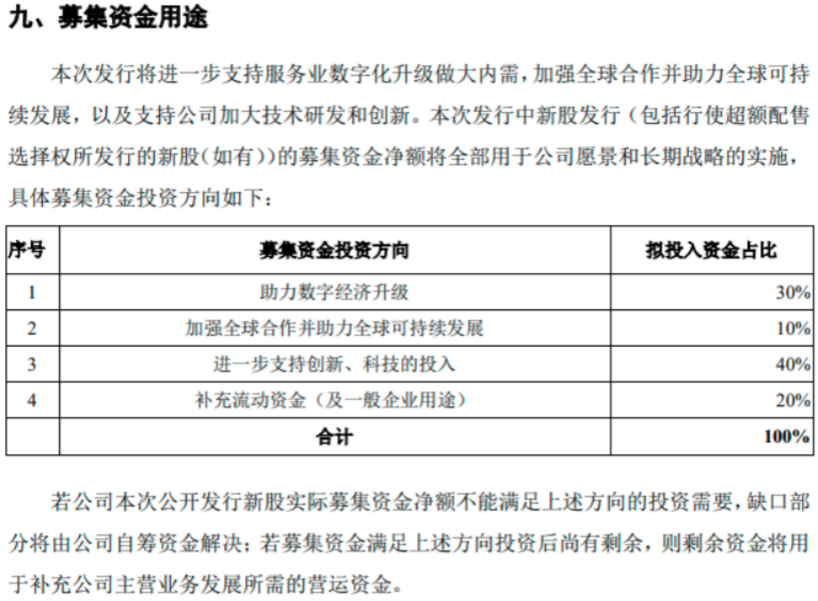 蚂蚁集团强调其科技基因属性。招股意向书显示,蚂蚁集团募集资金投资四大方向,包括助力数字经济升级(占比30%)、加强全球合作并助力全球可持续发展(占比10%)、进一步支持创新、科技的投入(占比40%)、补充流动资金(占比20%)。