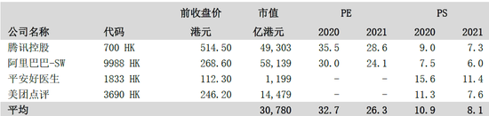 由于公司业务具创新型,暂无完全直接对比公司,考虑公司业务主要服务互联网用户,在以科技驱动的平台上提供多元化服务,已形成具规模的生态系统,因此选取提供多元化服务的平台型互联网公司作为整体PE估值及PS估值的可比公司。