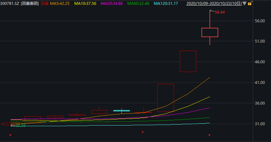 而同为双十一概念股的因赛集团最近三个交易日股价如火箭般蹿升,风头一时无两,和若羽臣股价走势形成鲜明反差。