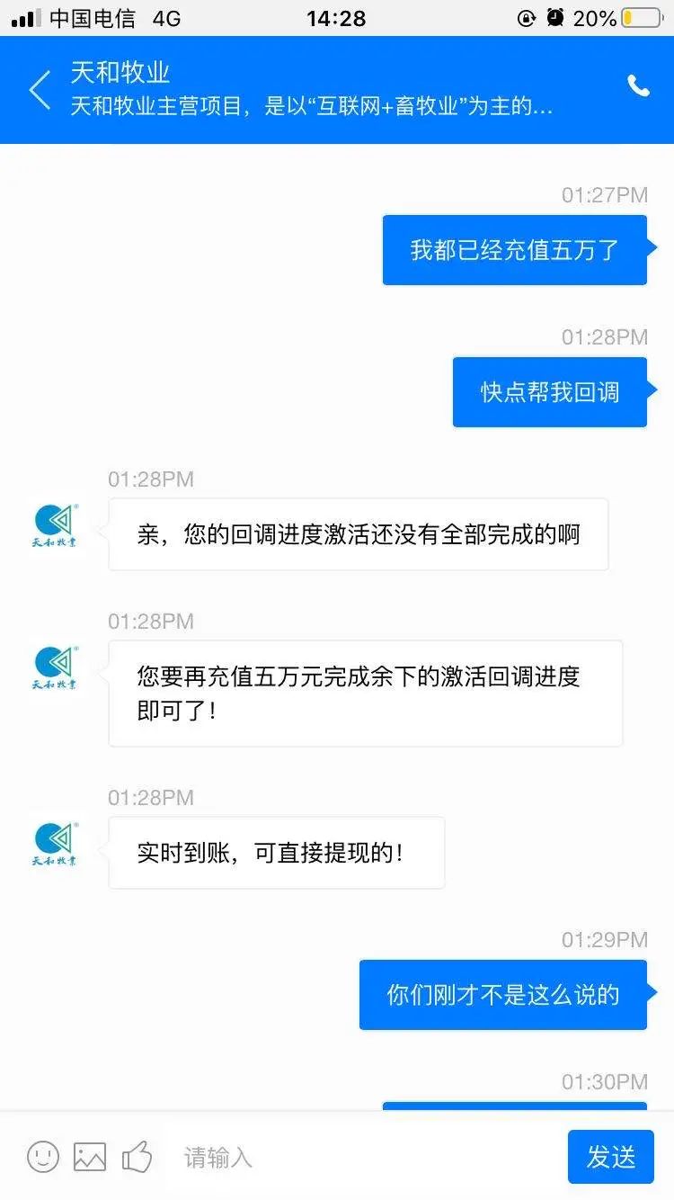 小宁在天和牧业APP客服的诱劝下投入15万元