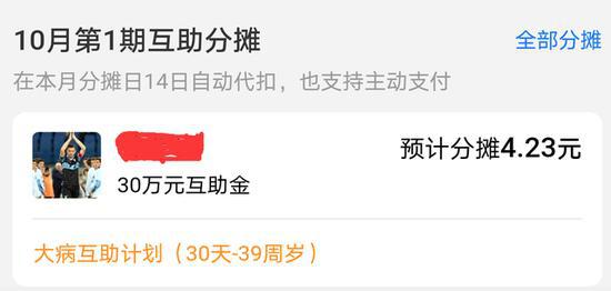 几天前,相互宝10月第1期的互助公示出来了,分摊费4.23元,相比9月,分摊费又贵了0.06元,这相比最初几分、几毛,分摊费涨了近百倍!