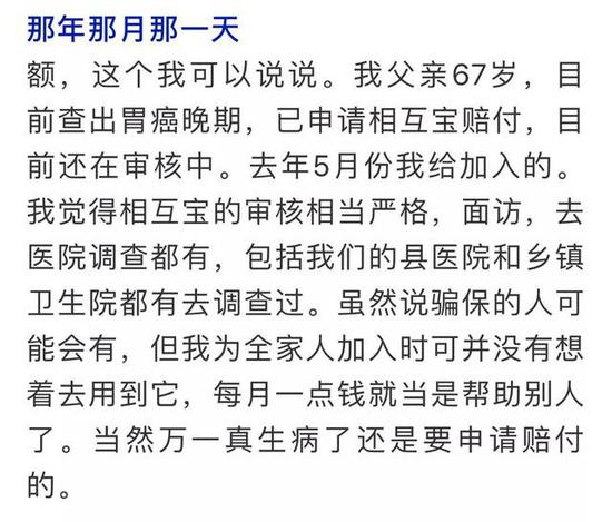 从网友的反馈,我们能看出相互宝的调查相当的严格,如此详尽的调查需要花费多少成本?
