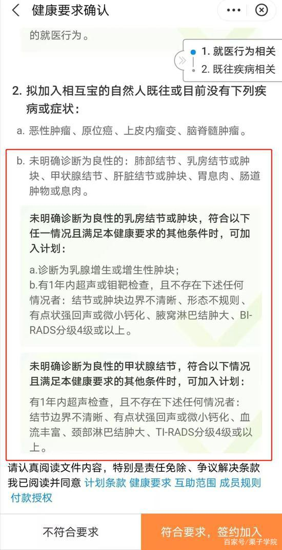 但是黄女士在加入前,进行过体检,虽然患有甲状腺结节二级良性,但是无需吃药治疗,这个也符合相互宝的参保条件。
