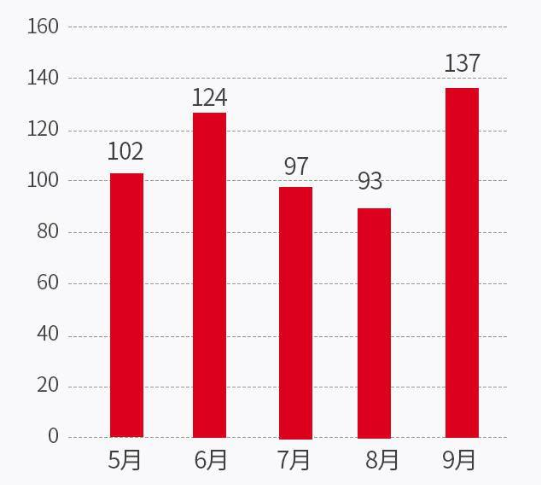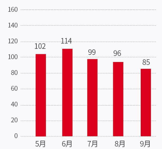 2020年5~9月长沙新房成交情况(万平方米)数据来源:湖南中原研究院