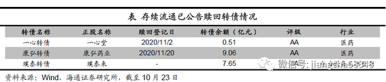 截至2020年10月23日,待发新券共3925.7亿元,共171只(待发转债详见附表2)。其中批文+过会的转债共834.8亿元,54只。