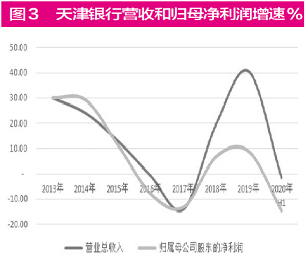 从业绩增速来看,天津银行的业绩增长一路走低,且最近几年呈现出非常不稳定的特点,业绩增速忽高忽低(见图3),时好时坏,增加了投资者预测其特定期间业绩和回报的难度,这当然也降低了投资者购买其股票的兴趣。二级市场上,天津银行股价的持续下跌,就是有力的证明。