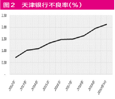 较高的不良率、疲软的盈利能力以及逐步走低的业绩增长速度等多项数据指标共同导致了这一结果的出现。从不良率表现看,今年上半年天津银行不良贷款余额42.65亿元,不良贷款率2.13%,较全国商业银行平均水平高出18个BP。2019年,天津银行不良贷款率1.96,同样高于全国商业银行1.86%的平均水平。