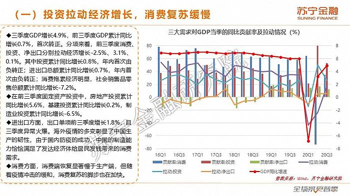 回望第三季度,在全球经济一片愁云惨淡中,中国经济的表现一枝独秀,三季度GDP同比增长4.9%,前三季度累计GDP首次转正,同比增长0.7%。
