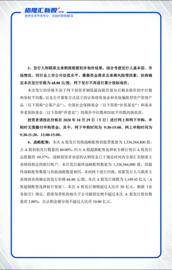 战略投资者包括阿里集团等全球六大主权基金,并承诺本次配售股票中限售期限为12个月-24个月,其中全国社保持股2.3%。而二级市场发行20%,也就说留给机构和个人投资者“打新”股票有3.34亿股(“绿鞋”前),按照每股价格计算,绿鞋前A股募资总额1149.45亿元,那么打新参与规模可超过220亿元。