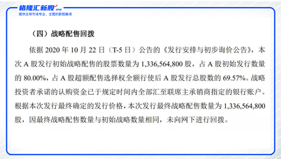 根据公告显示,蚂蚁将在A股发行不超过16.7亿股的新股,其中本次A股发行初始战略配售的股票数量13.4亿股,占A股(“绿鞋”前)初始发行量80%。似乎有意减轻二级市场压力,同时也在最大程度上利好打新投资者。